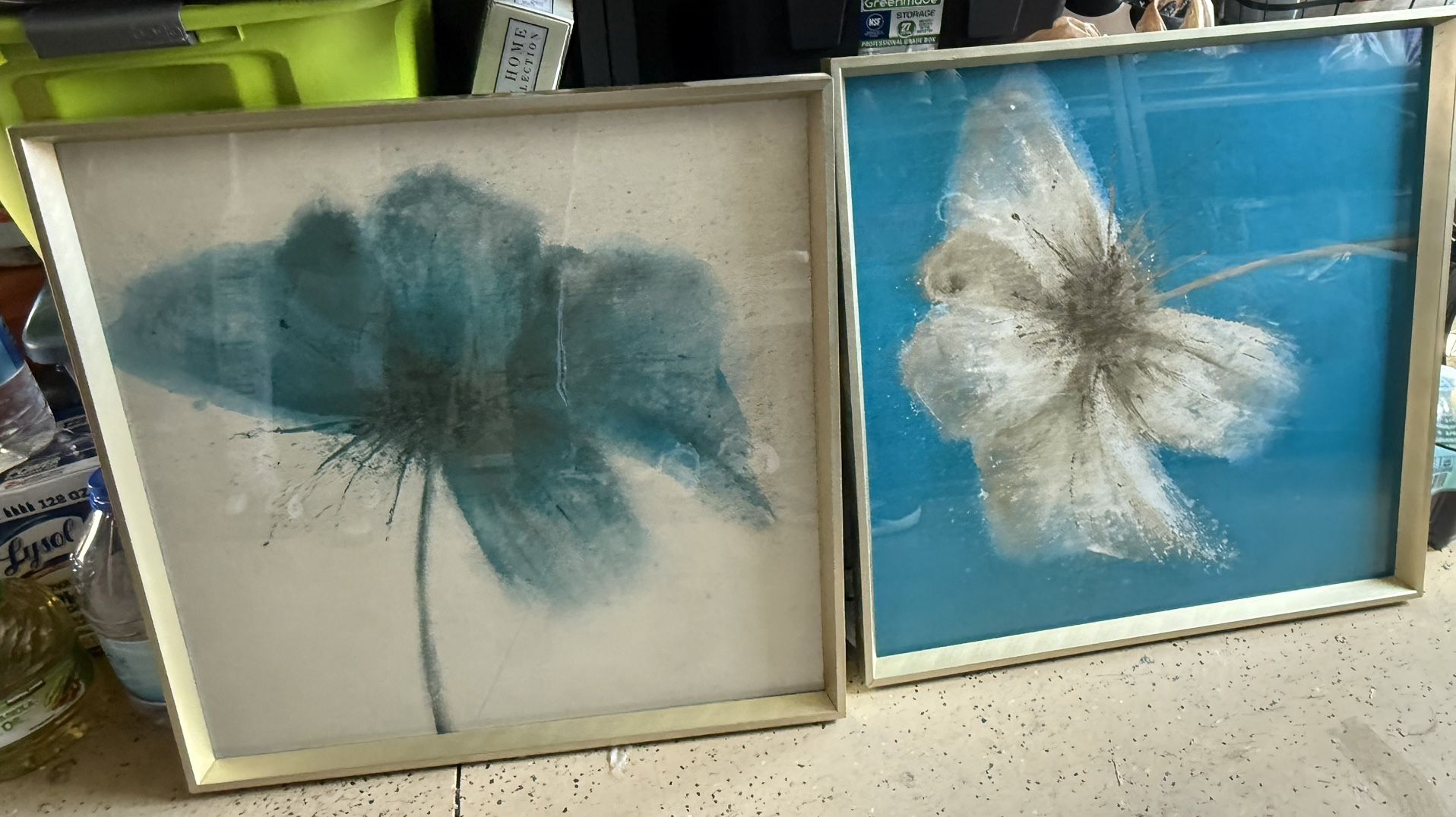 29” x 29” Blue and gold floral art frames $10 each