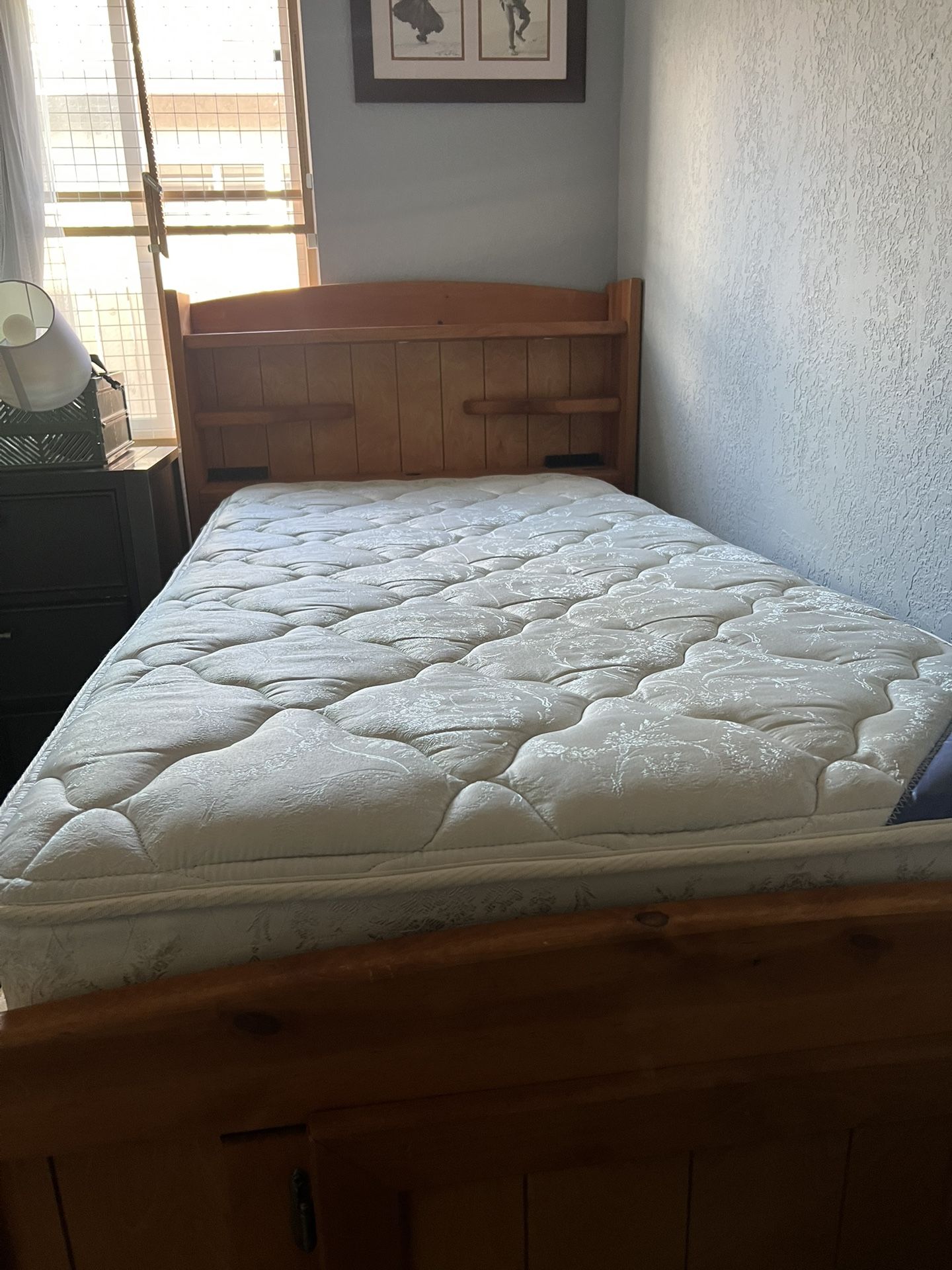 Used bed frame in solid condition, looking to sell as soon as possible. W60" D85" H51"