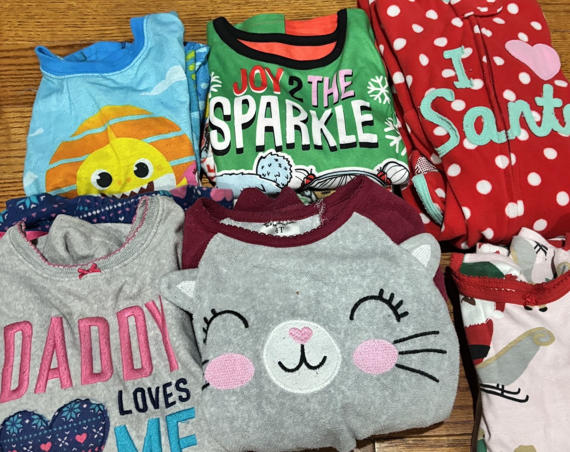 6 total pair of comfy pajamas. Three sets are holiday themed five of them are long sleeved and 1 pair is footed. Lol pjs are brand new with tags.