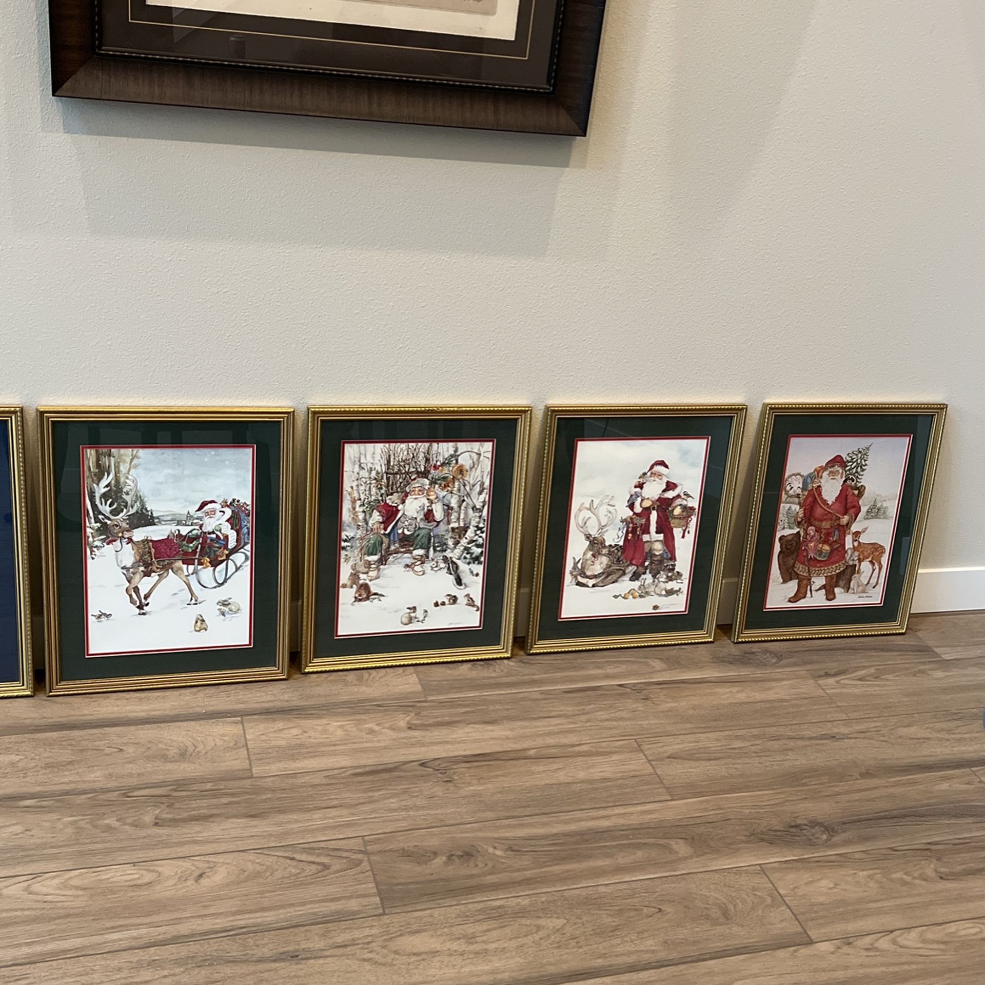 18 x 22” Santa pictures with custom 2” matting. Excellent condition and perfect size to display individually or in groupings. I used 4 down my entry hall! Looked great. $15 each or all 6 for $60.