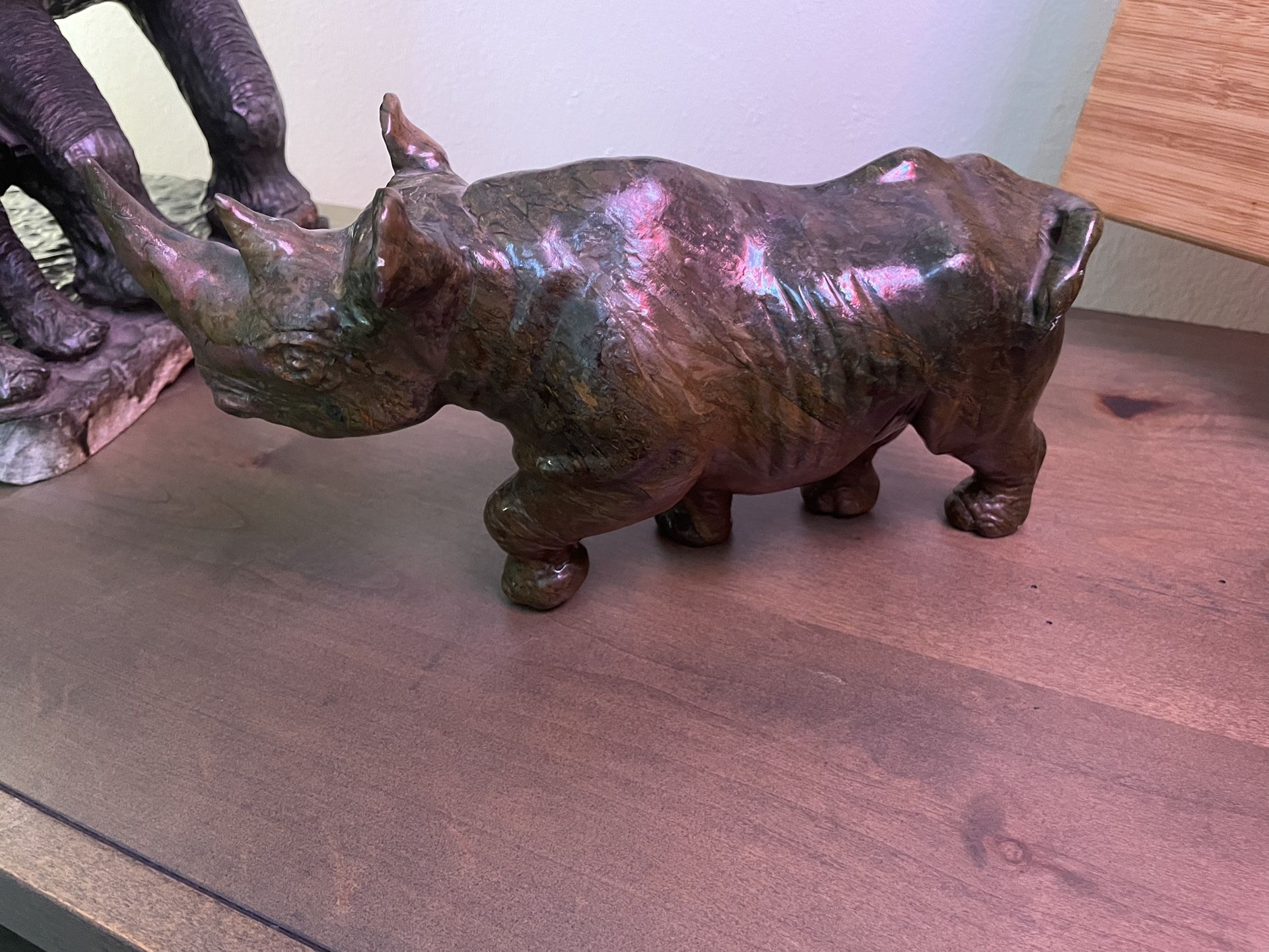 Beautiful, hand-carved stone statue of a rhinoceros. Made from genuine serpentine stone. Approximately 10.5” x 5.5”. Also have hippo and elephants for sale if interested.