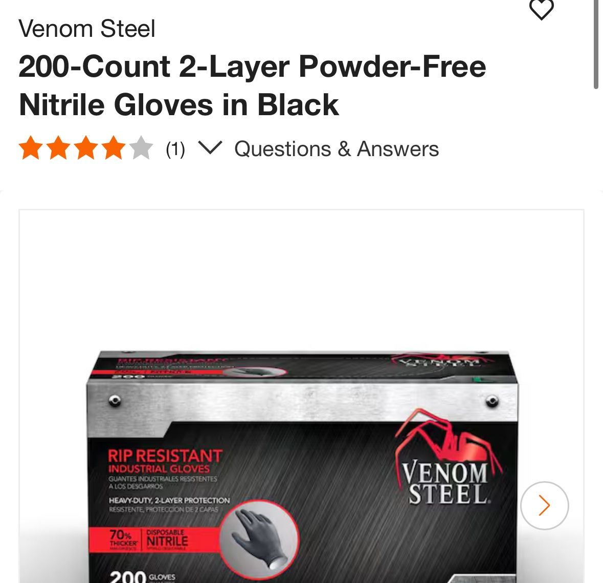 Venom Steel 200-Count 2-Layer Powder-Free Nitrile Gloves in Black
