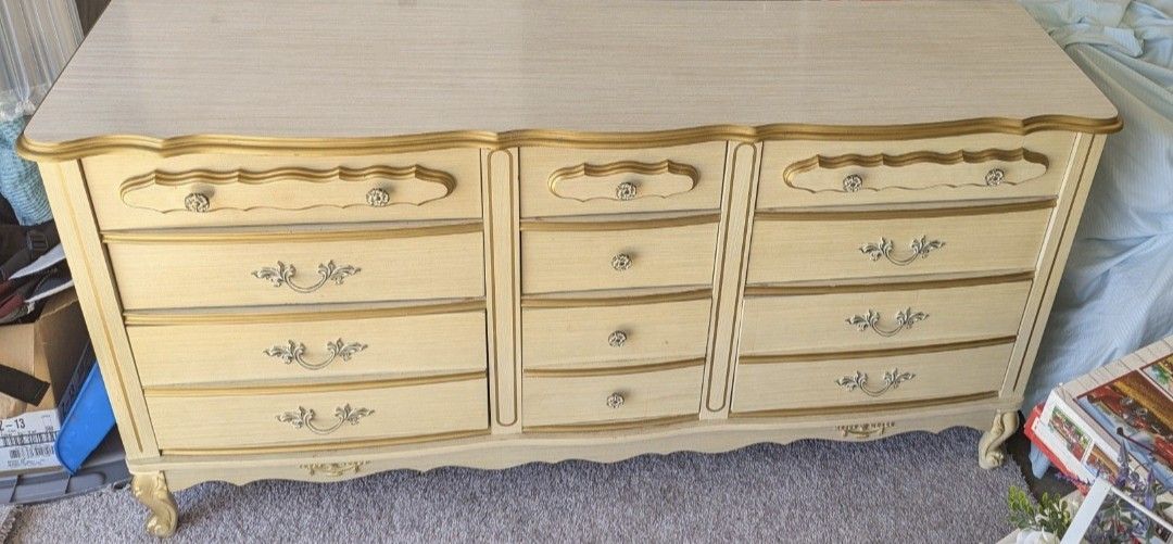 Vintage Bonnet By Sears 9 Drawer Dresser, 32" x 60" x 17", Matches, Includes Wall Mirror, 31" x 39" Excellent condition We are raising money for rescued kitties ๐ป Please see all our listings Thank you ๐บ