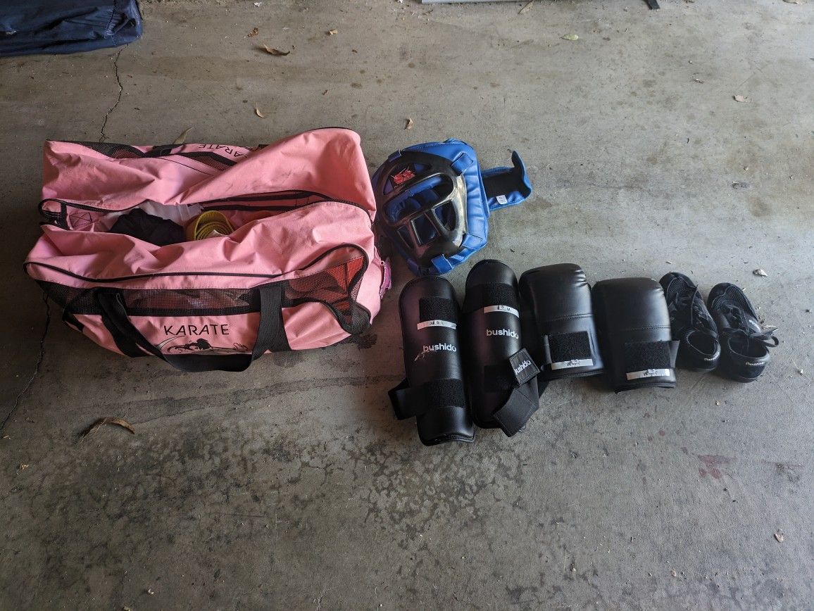 complete karate gear with bag shoe size US 13 rest of the gear small size 4 years to 8 years old great condition