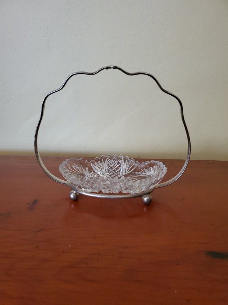 Vintage Cut Glass Dish In A Silverplated Metal Caddy/Holder