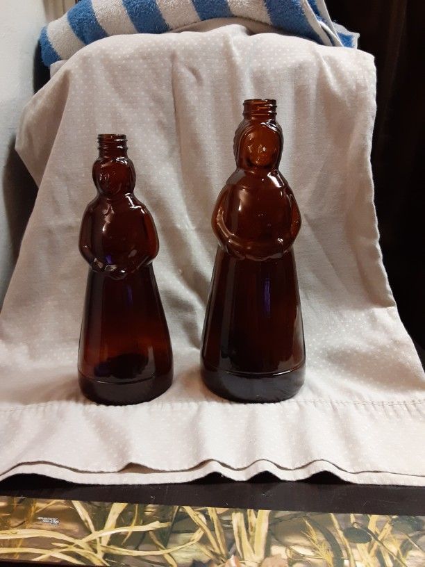 Vintage Aunt Jemima Miss Butterworth syrup bottles amber in color two sizes 1 -11" inches 1- 10" inches cash only you pick up