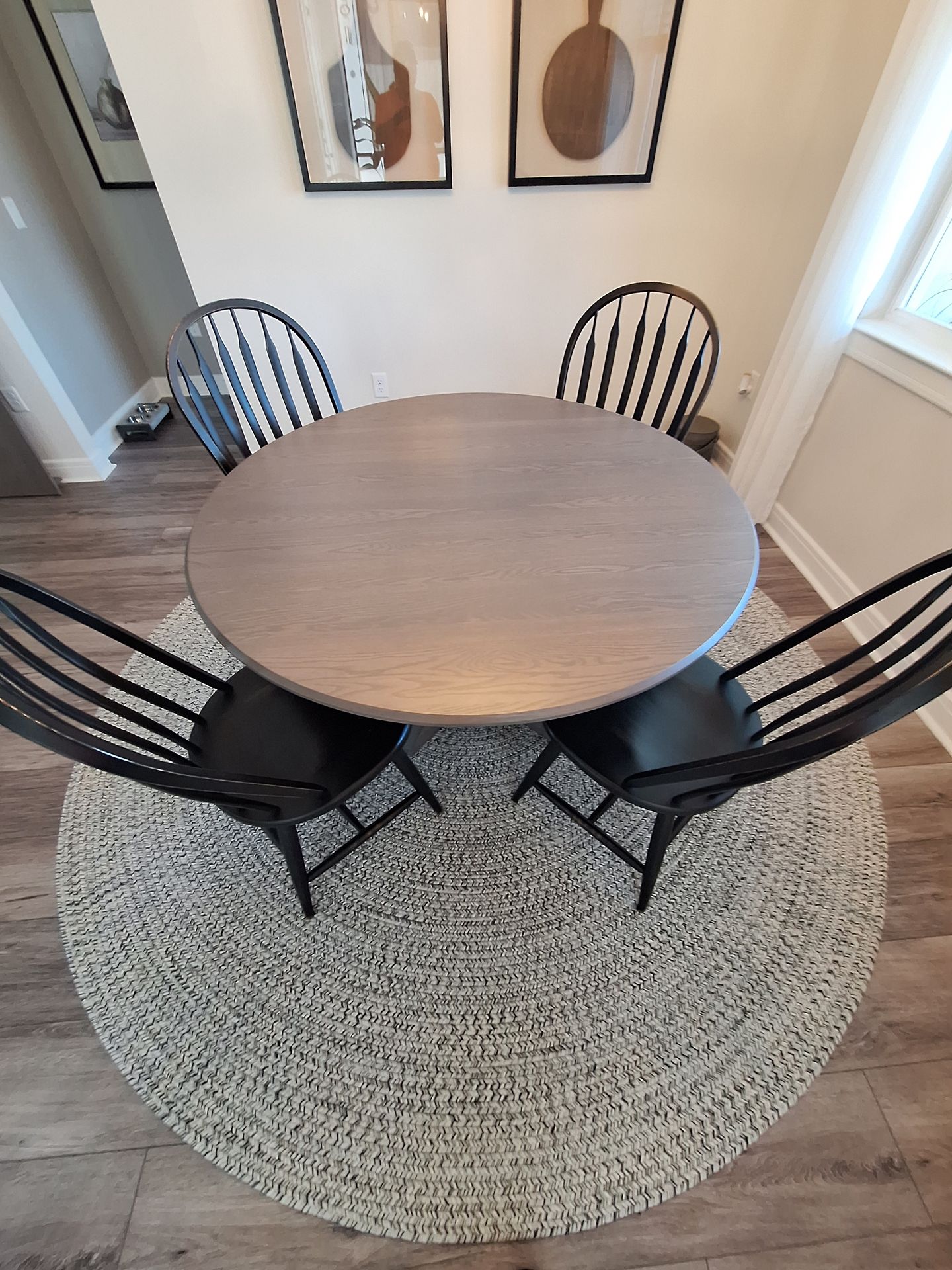 This is a beautiful Haverty's Furniture round dining table with 4 solid wood chairs. This table is in nearly new condition with no marks or blemishes. The table is 54 inches across, with a 18 inch insert and is 30 inches to the table top. This set retails for $4500 brand new, so it's priced to sell fast!