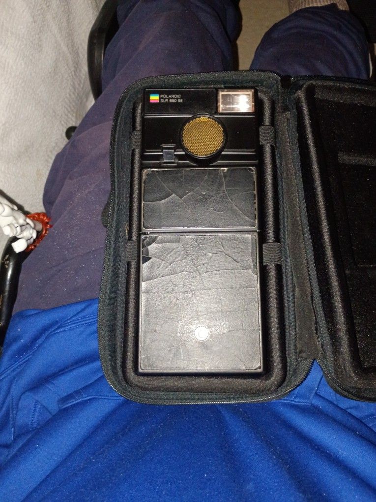 Vintage 1st Generation Polaroid SLR 680 SE Land Camera w/ auto focus and auto strobe. Requires Polaroid 600 film pack. Comes with original carrying case. In fairly decent condition. Works great but needs a few minor cosmetic repairs. This is the 1st generation with the light blue shutter button and is not found very often. Please respect the fact that I've done extensive research on this camera and I know how it's value so please don't waste my time with low-ball offers. I'm already willing to let it go for a fraction of what it's worth. $200 or best offer. Please serious inquiries only. Thank you and have a blessed day