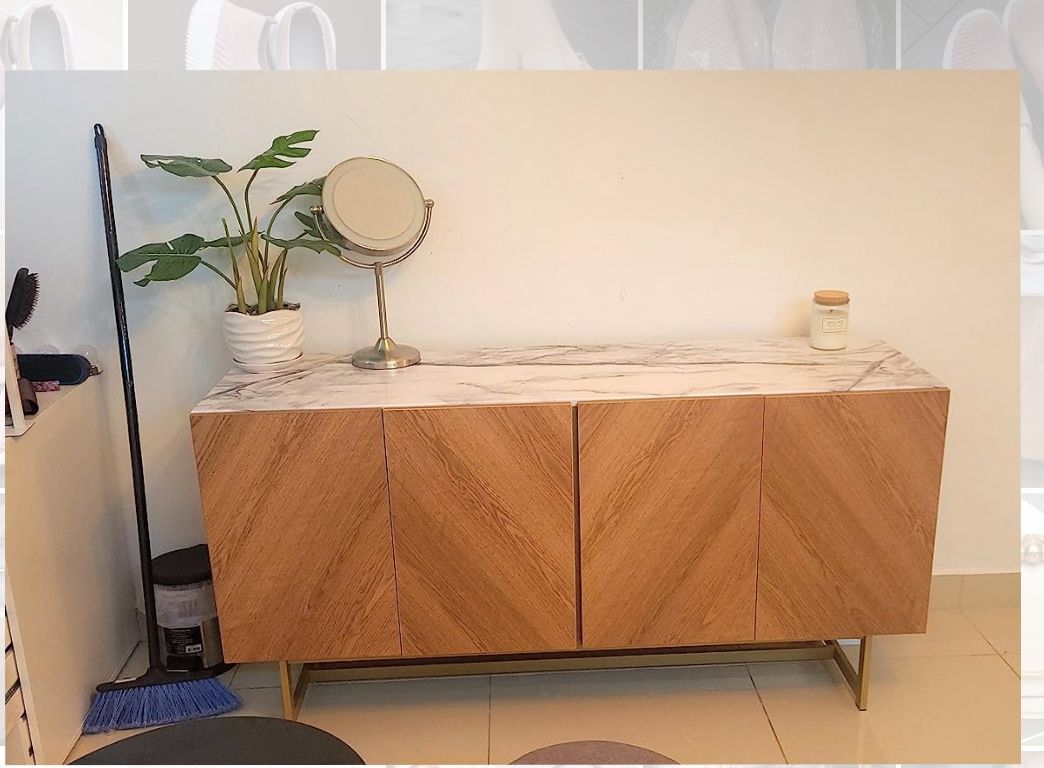 1️⃣. Slightly defective (assembled) :$150 2️⃣. brand new in the box: $230 Faux Marble Top Mid Century Modern TV Stand for TVs up to 65“ Product Dimension: W 57.09” x D 17.09” x H 29.02”. Weight: 90 lbs. Made of natural engineered oak wood with chic gold legs Easy to clean and assemble with all the parts, tools and instructions included. Elegant Marble Top Furniture: Roomfitters faux marble top modern TV stand make sure to keep your living room or entryway looks fancy and modern. Tip-on Cabinet Doors: a light touch is all that's needed. Handle-free design for more simplicity and is relatively safer when the space is small such as the hallway, kitchen or aisle.