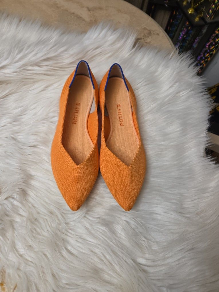 Chic and comfortable orange flats. Perfect for everyday wear. Stylish pointed toe design. Like new