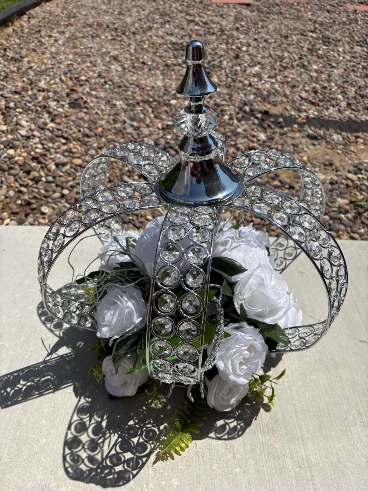 Silver crown w/ artificial flowers centerpiece for only $10! • in amazing condition • flowers are included • located in Rialto