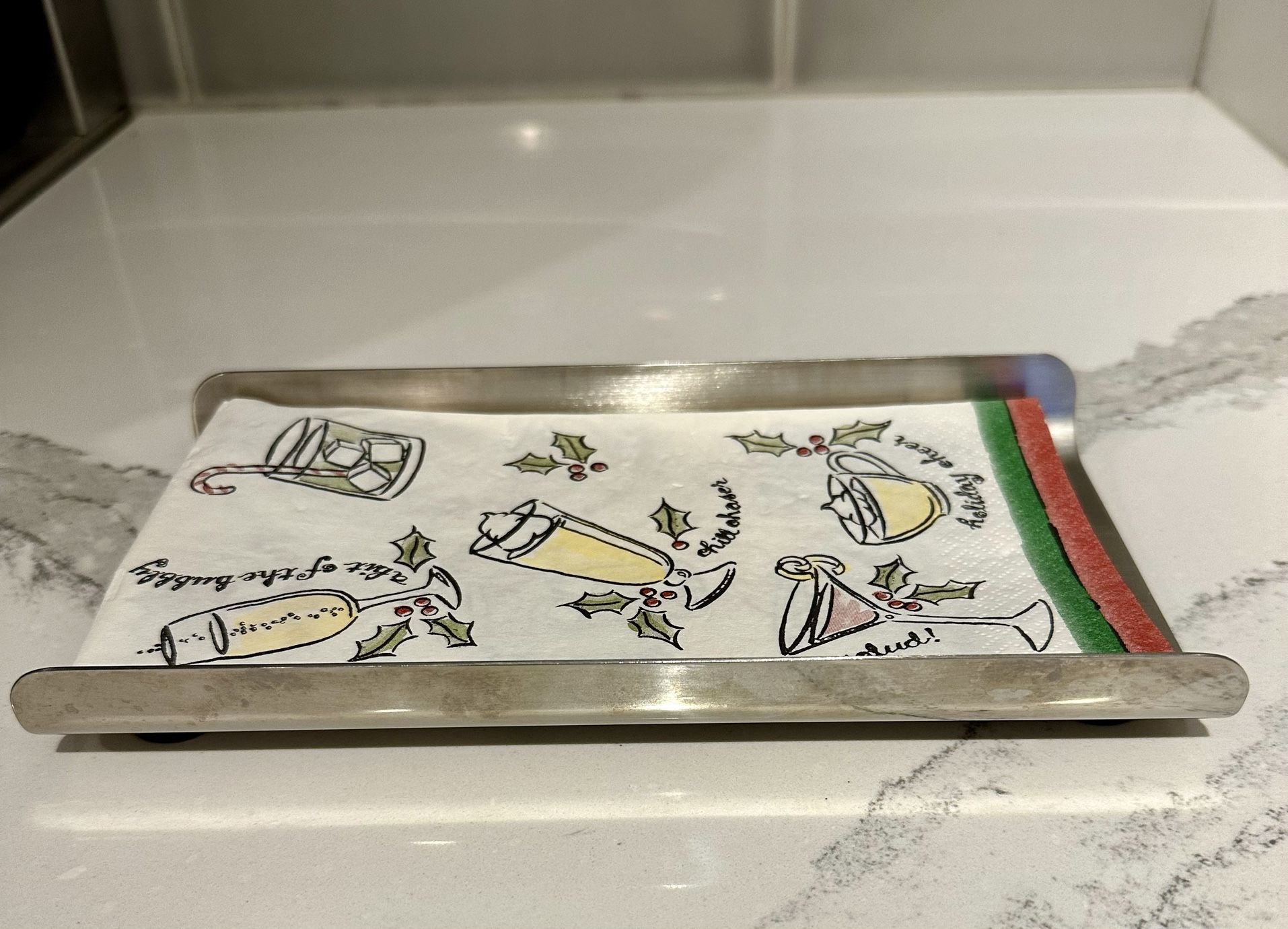 Silver Guest Towel Holder Catchall Tray