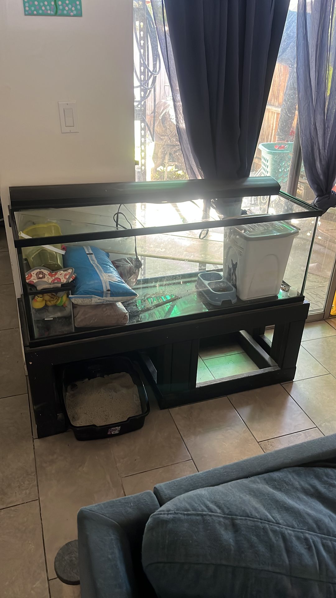 It comes with the stand on the pic, nothing fancy, the tank itself is in good conditions comes some gravel and it’s lamp. Make an offer need it gone