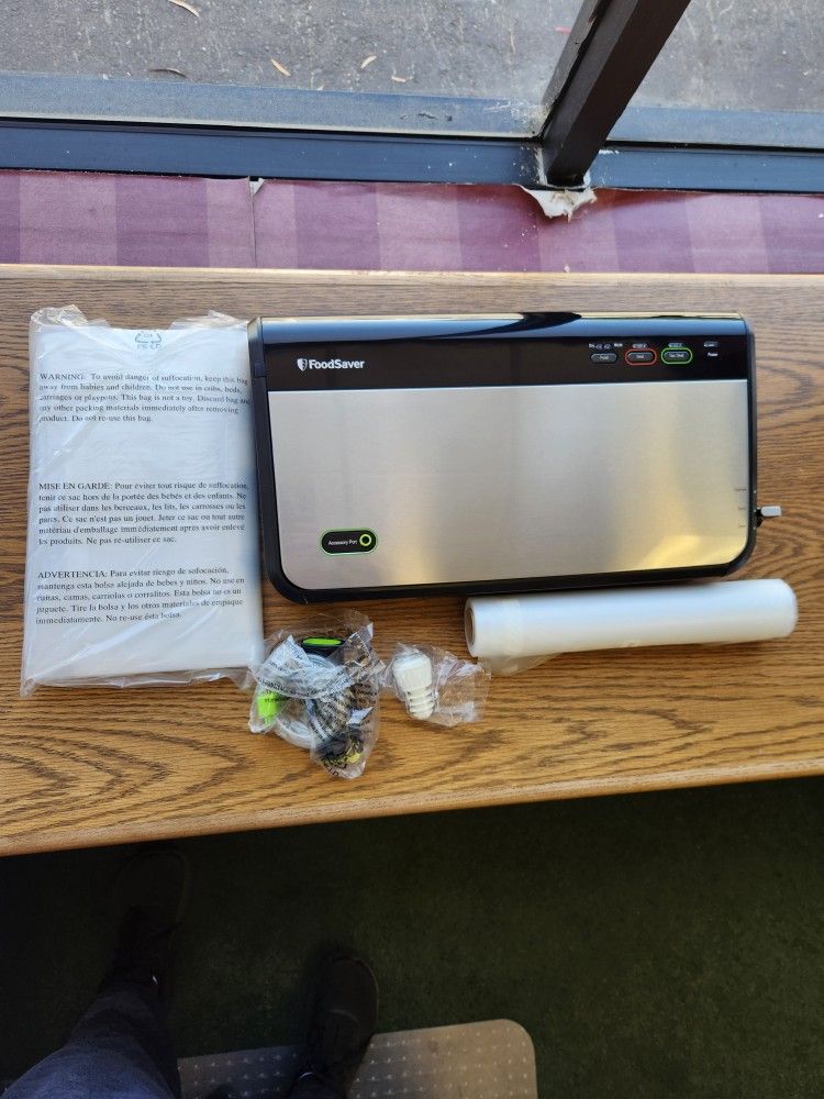 Foodsaver model #FM2435. New in open box. Comes with handheld sealer attachment compatible with Foodsaver zipper bags, canisters, and containers. Includes a vacuum seal roll, and about 20 various size zipper bags. Retails on Amazon for $149.90. Selling for $10. Available in stainless steel, red or black. Pickup from warehouse in Gilroy.