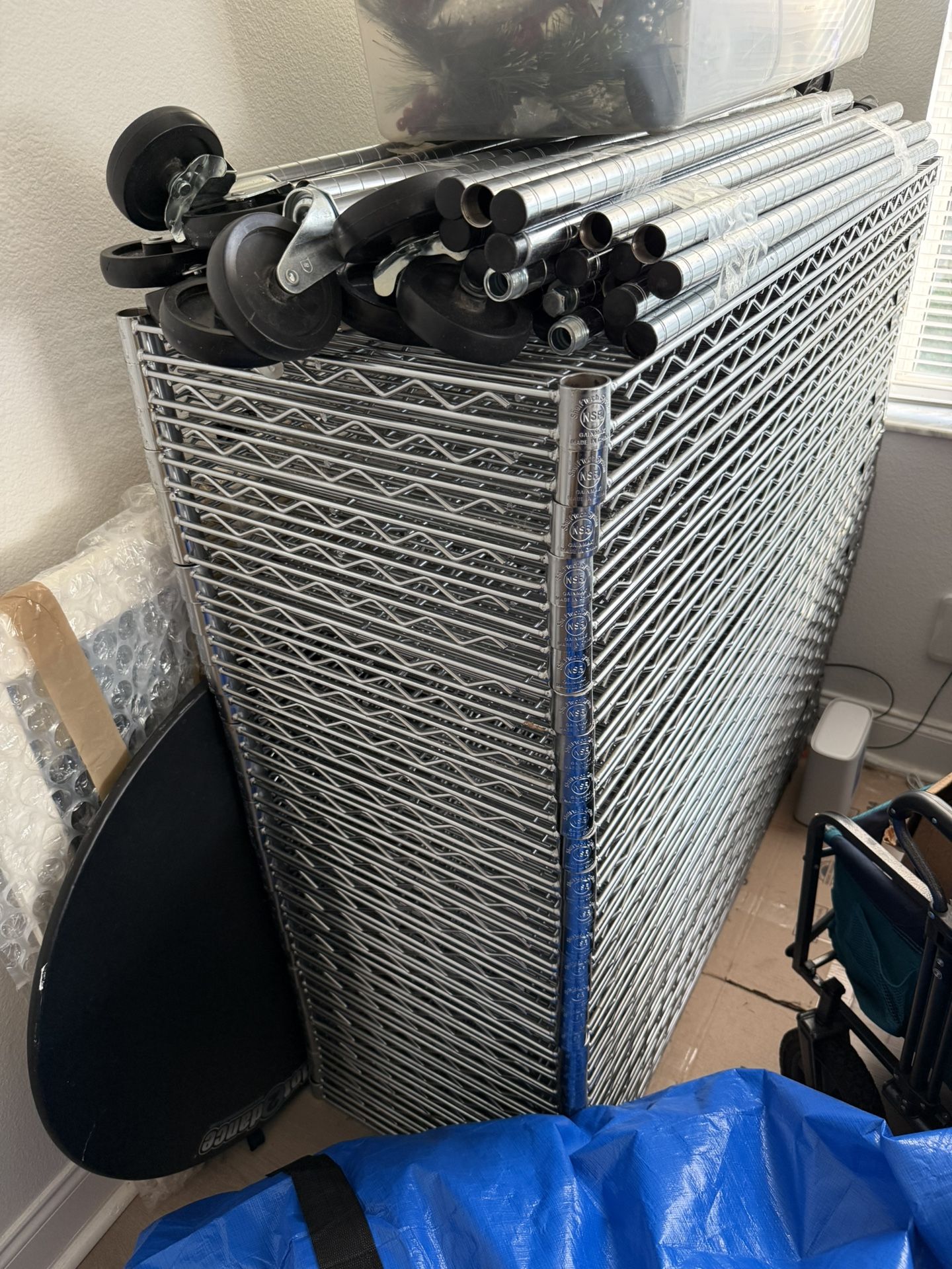 Moving sale. Need to sell. There are a total of four racks that you can put the five shelves or you could make five and have either two or three shelves, it all depends on what you wanna do for your needs. I need it gone. Make me an offer