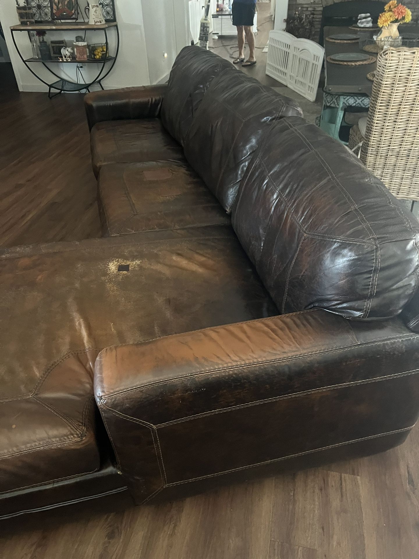 <FREE>This is a 2 piece sectional w/chaise lounge. No recliner. It is well used with patches where needed. Free to whomever can use it. You will need a large truck or trailer and muscles. Located near Higley and Broadway in east Mesa. Thank you. I won’t hold so first here gets it.👍