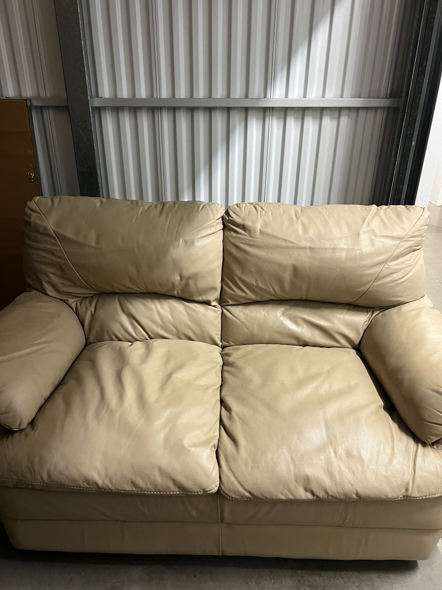 wo beautiful cream-colored real leather loveseats—ultra-soft and comfortable! Can be sold separately for $75 each or both for $125. Elegant, neutral design that fits any space. Good condition!