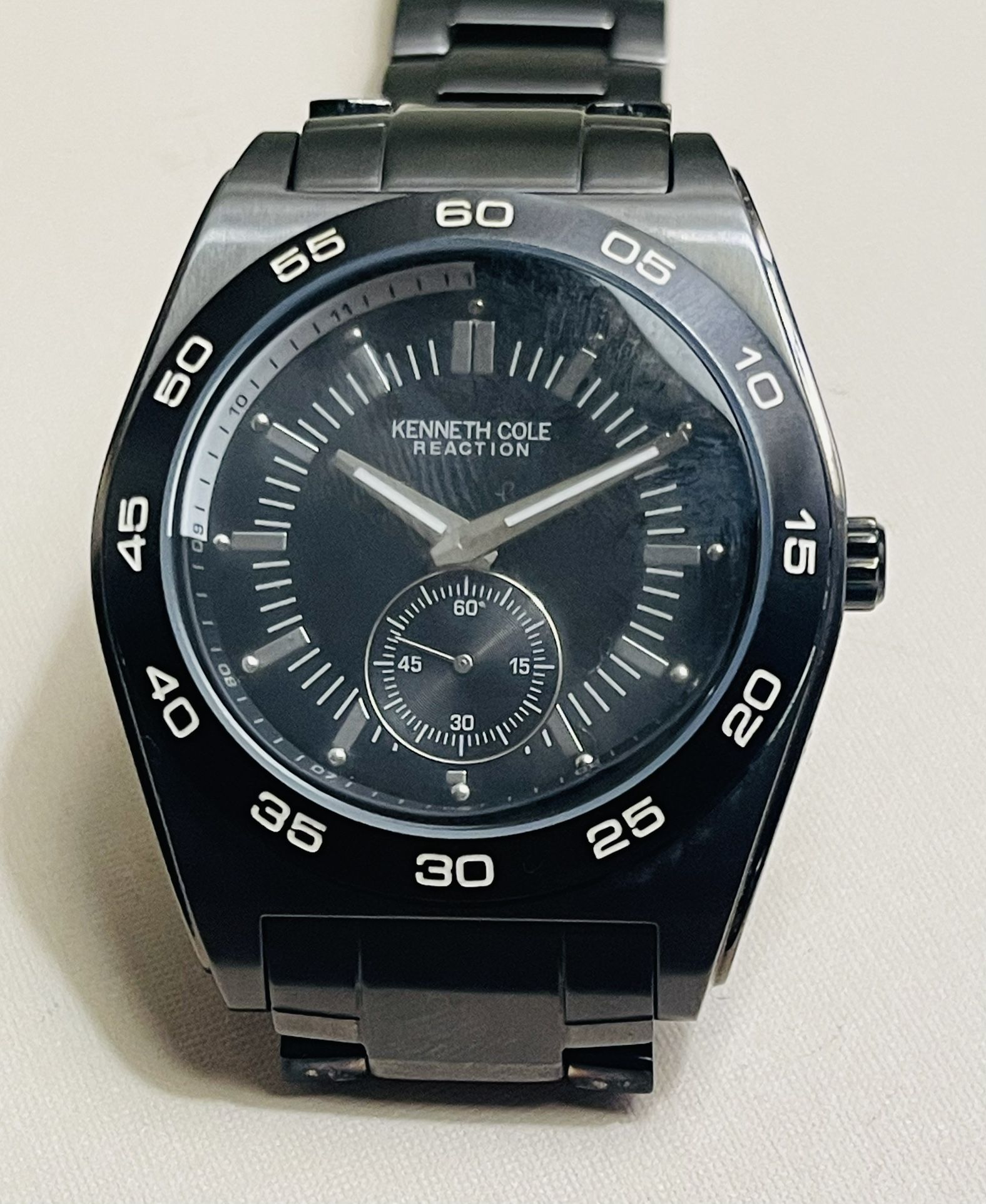 MENS watch, Japanese quartz movement, black stainless steel bezel and bracelet, WR30 M,