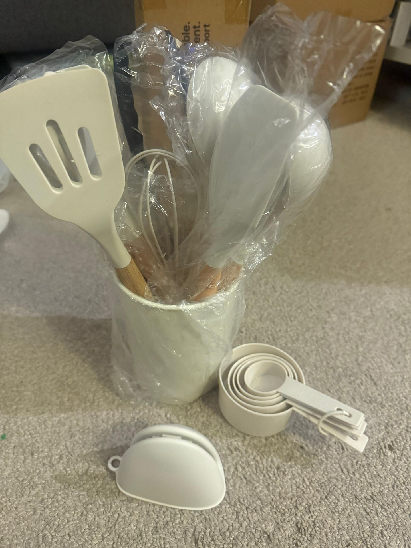 Silicone Cooking Utensils Set - Silicone Kitchen Utensils for Cooking Wooden Handles, 446°F Heat Resistant Kitchen Utensil Spatula Sets, Gadgets for Non-Stick Cookware BPA FREE (Cream White) New sealed packages Pick up Belmont and broadway Chicago 2 days shipping for 3$ 12$ !!! Not a penny less . Any lower offers will be ignored or blocked immediately.