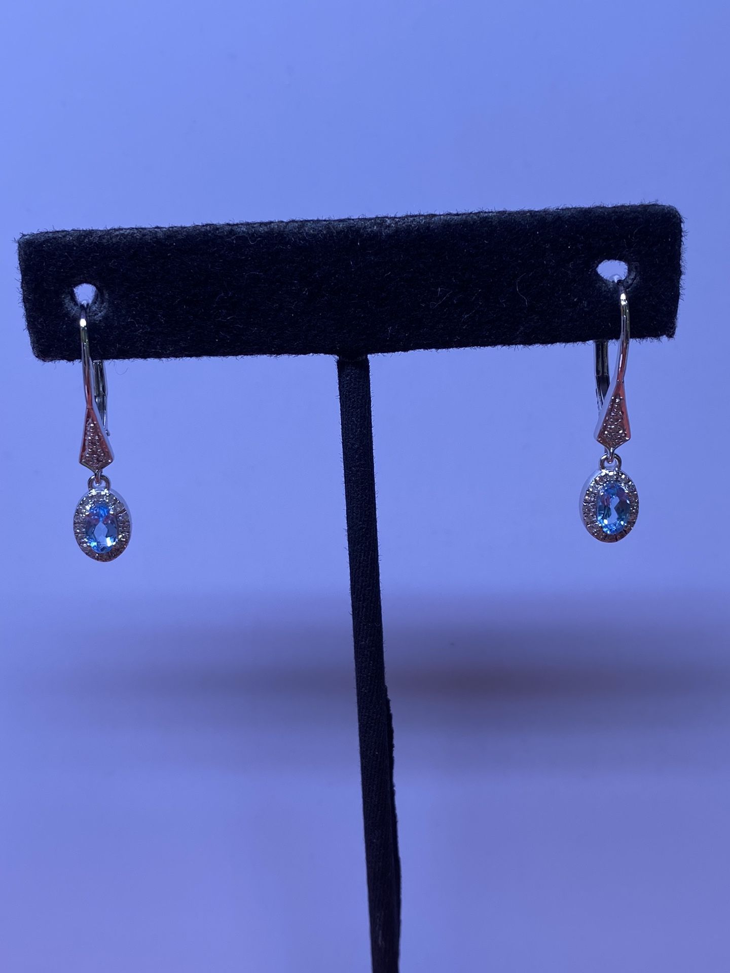 Gorgeous dangle earrings with halo set aquamarines. Details: 10k white gold 2.2 grams