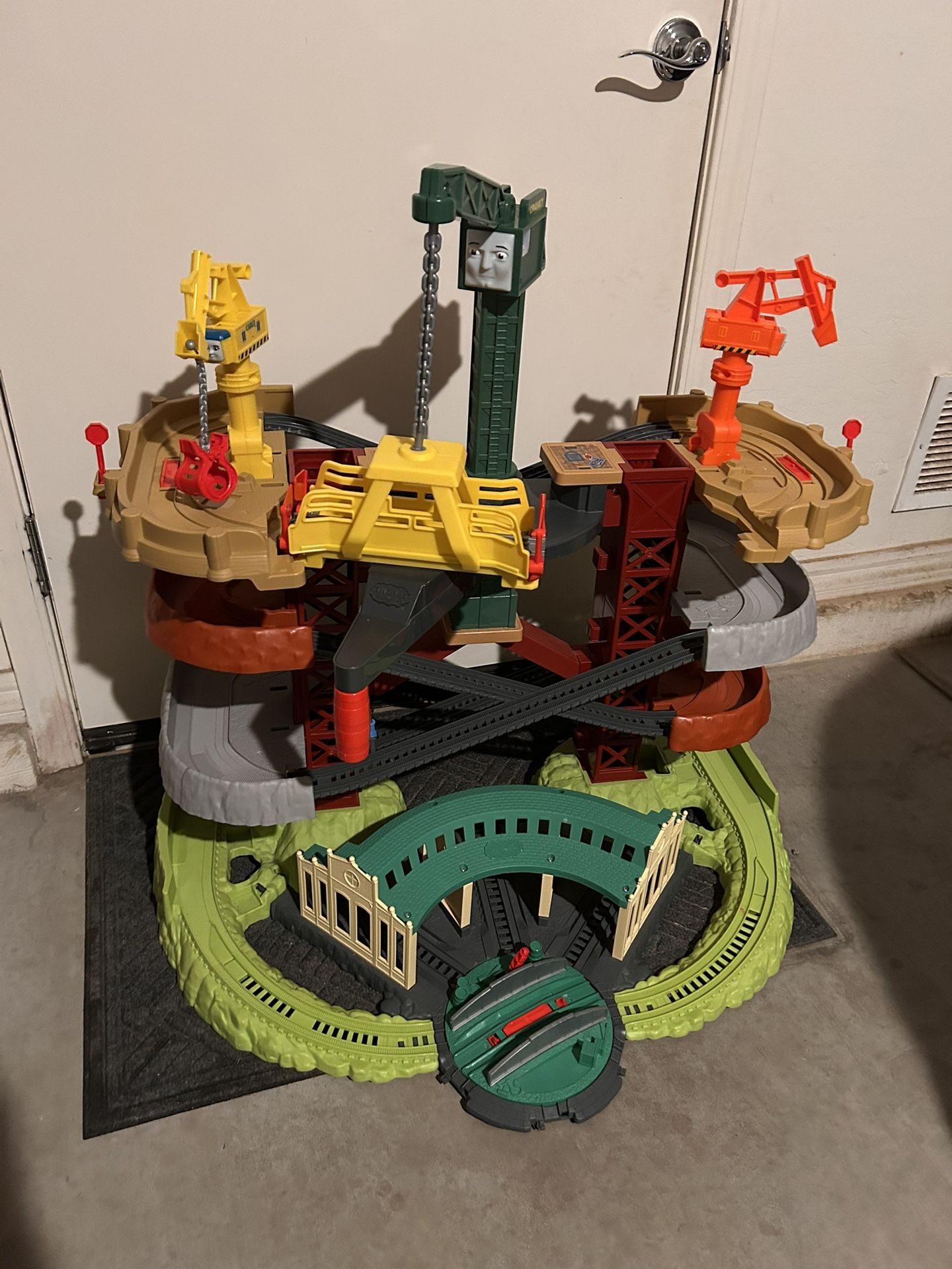 Good condition, missing one crane chain on the orange crane. Comes with Thomas Train and the airplane