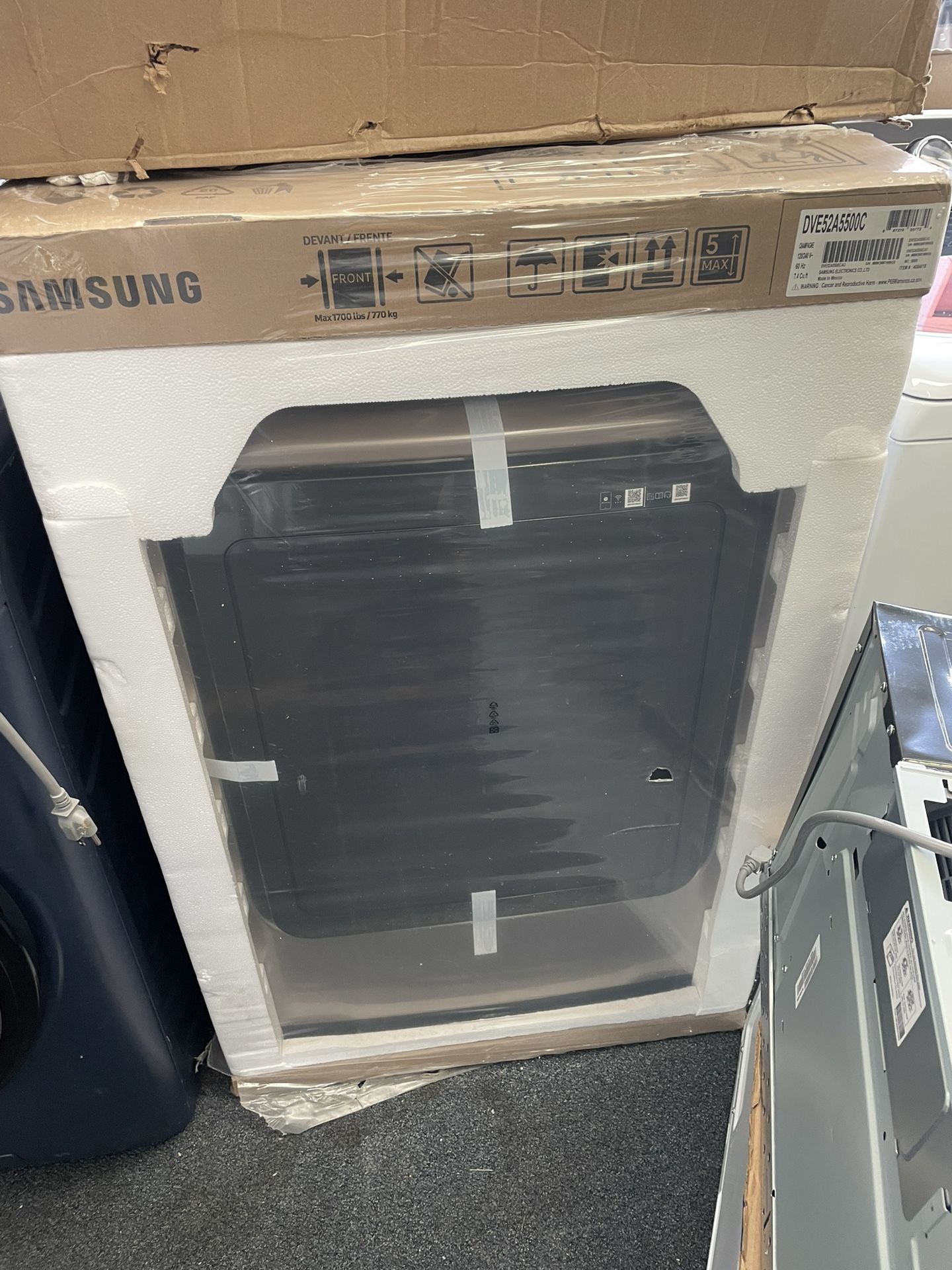 Brand new gas dryer with steam, vented, sanitize in champagne color. Wi-Fi connectivity, Sensor Dry, smart care, dryer door reversible, lint filter indicator, sensor dry, anti microbial treatment. Brand new. Retails for 1,200. Selling for 575. Germantown appliances. 2617 Germantown Avenue.