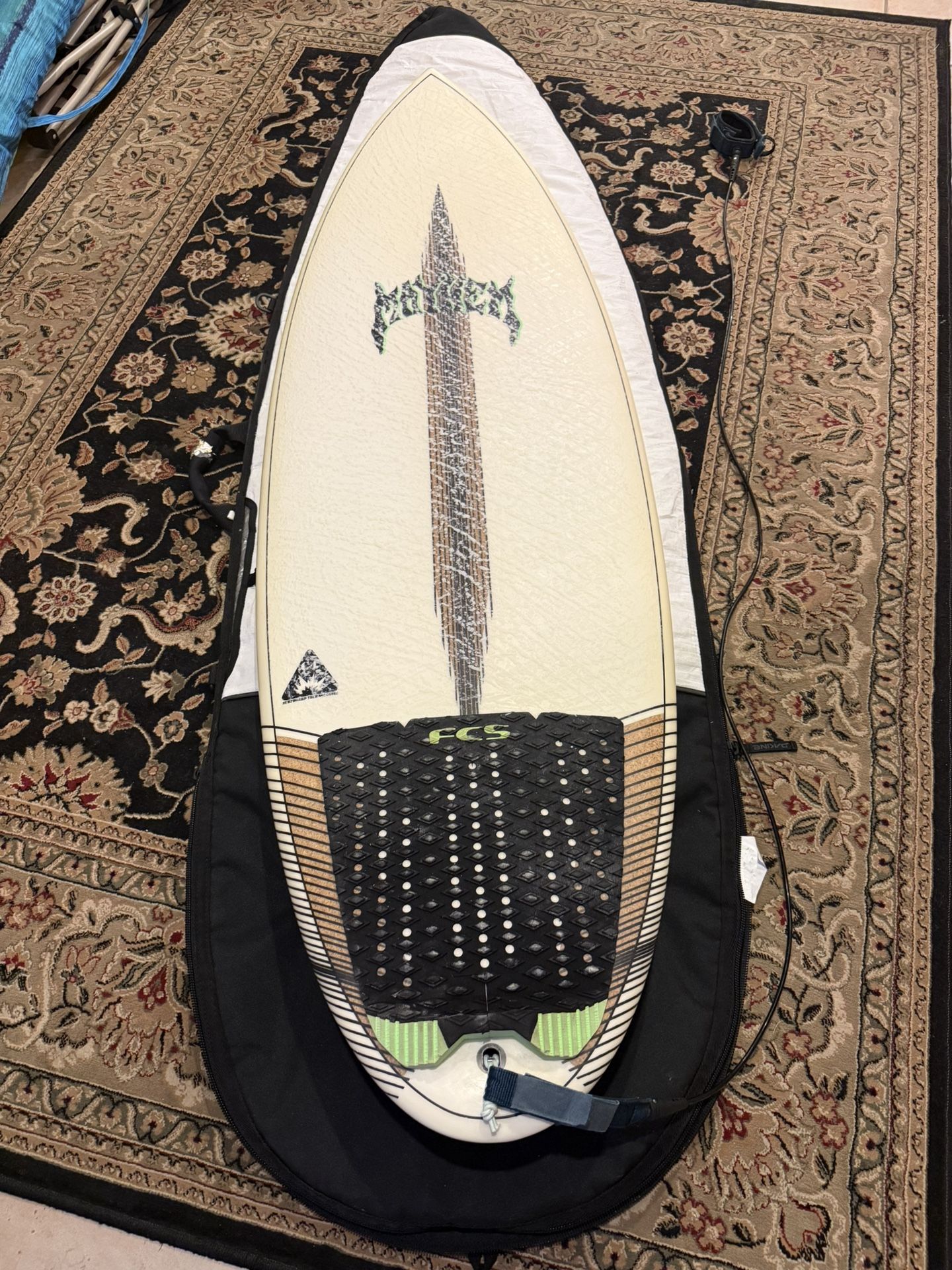 Mayhem puddle jumper hp rnd 5’7 stock dims. Bought this board used barely surfed it and the fix box broke not willing to put in effort to fix it. Ding on tail as well. $20 would be cool but you can have it free feels wasteful to toss it