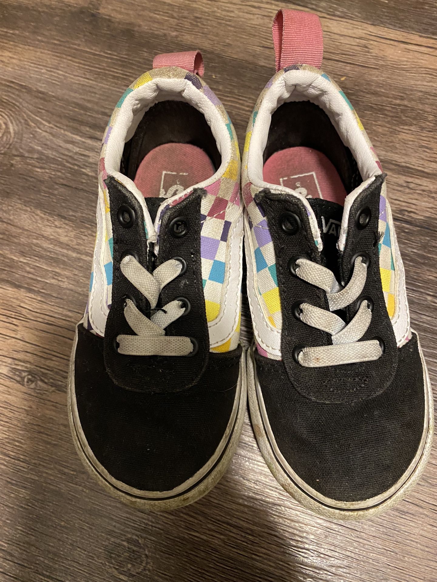 These are a pair of toddler girl size 7 vans slip on shoes. Super cute and comfy