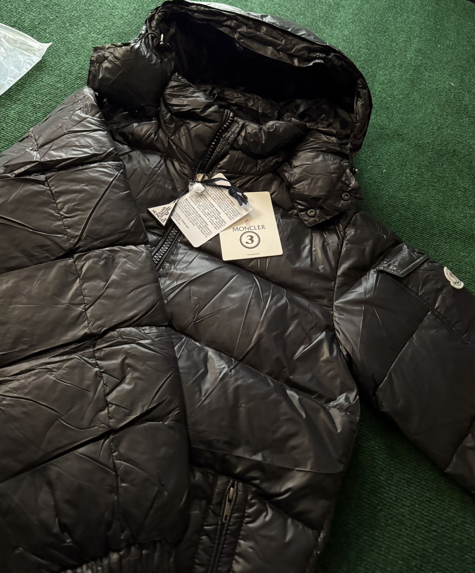 Moncler Black winter coat never worn brand new with packaging.
