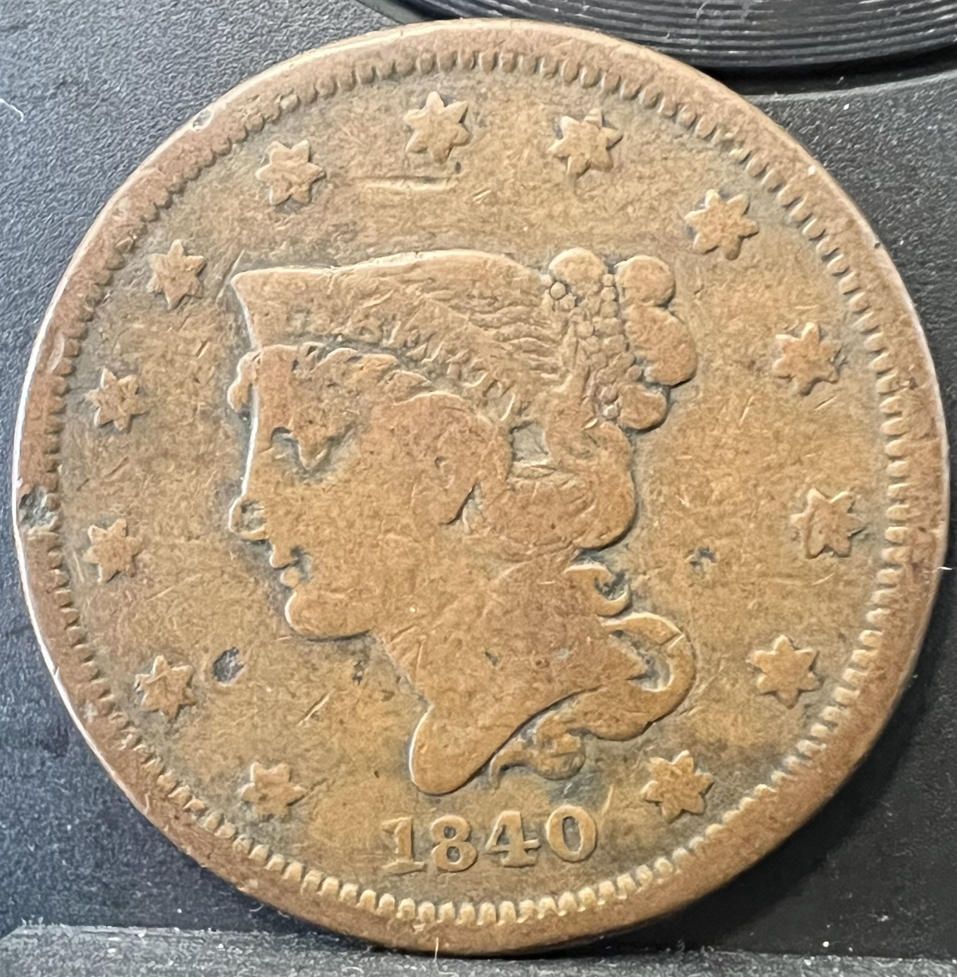1840 Braided Hair Large Cent Small Date Penny, 100% Pure Copper Type Coin