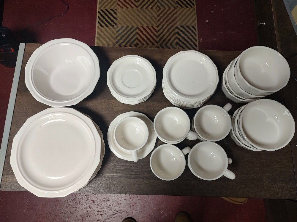 5 large plates, 8 small plates, 7 small bowls, 7 saucers, 8 cups, 1 large bowl