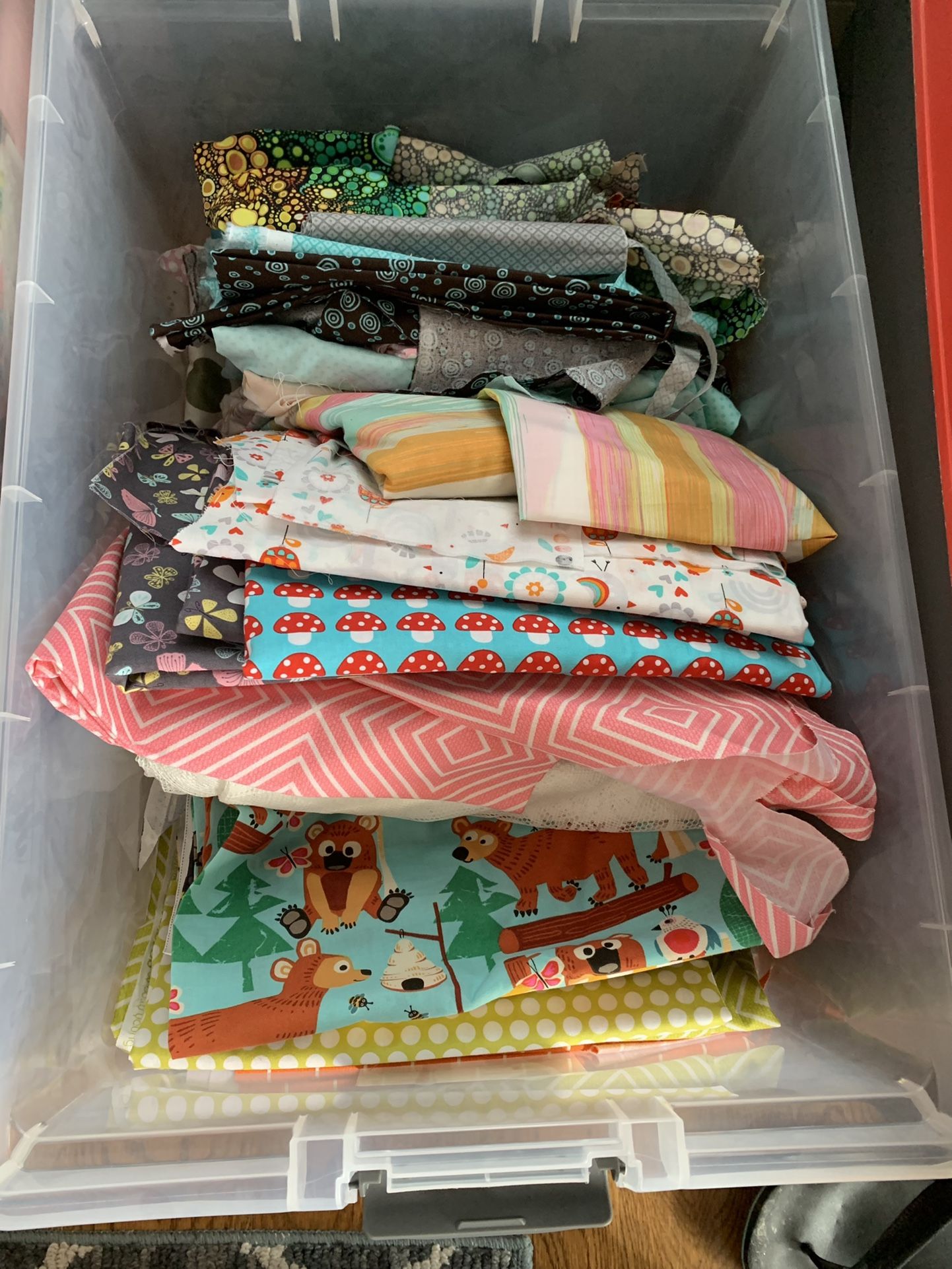 I had a sewing business making baby boutique items for children. I have stopped sewing professionally but have quite a lot of adorable, high quality fabric to pass on: quilters cotton, flannel, fleece, minky and jersey. I have a lot of embroidery thread, binding, zippers and some Velcro as well. These fabrics would be perfect for kids clothing, or kids room decor- curtains, pillows and blankets. I’m hoping for a local person to come take most of it, so the $200 is for the bulk of it. If you’d like less- to come and select which prints, we can negotiate based on how much you take.
