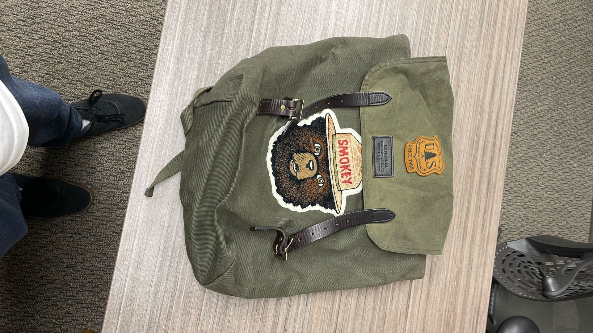Lightly used USFS Smokey Bear patch sewn by Fioson on a Ranger Backpack.