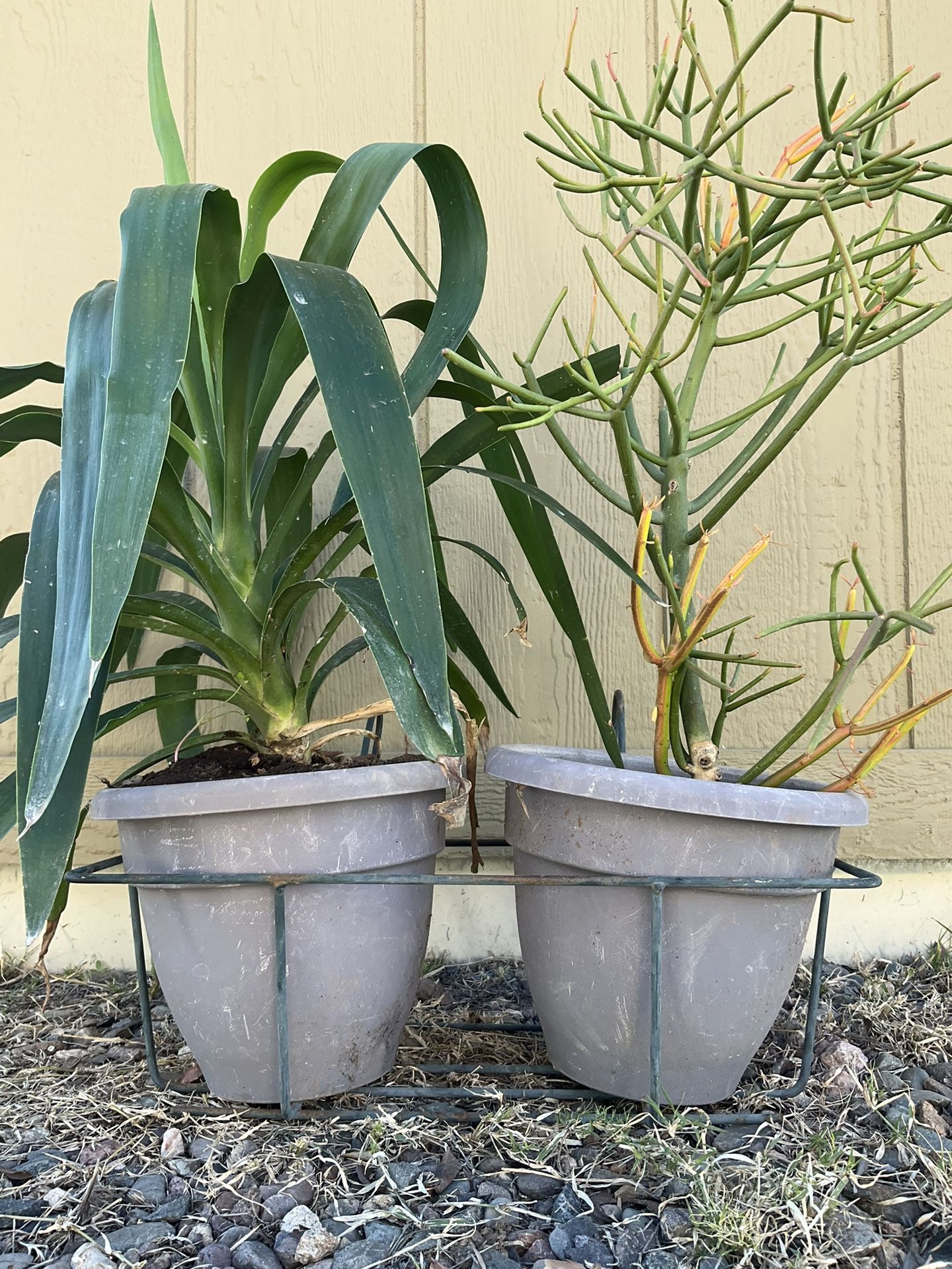 2.5 ft Dracaena . 2ft firestick. Handling rail metal basket. Weeder hoe rake shovel pruners etc 35ave/glendale all for $40