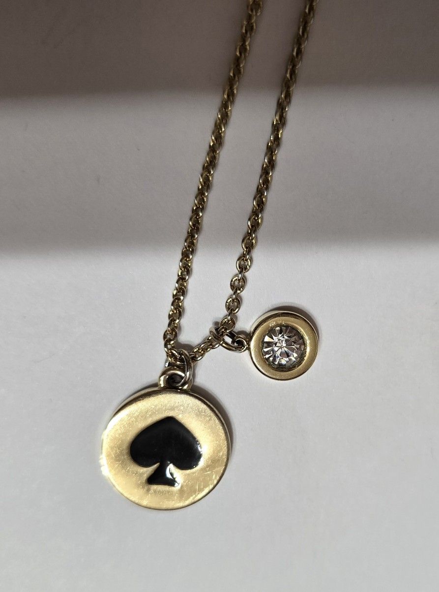 Kate Spade 10" Gold Tone Necklace With Black & Gold Logo Pendant & Clear Crystal $15. Pick-up In Aurora.