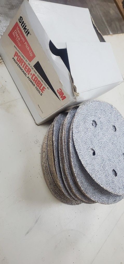 Porter Cable brand sanding discs 1 box of 50 pcs and 1 box of 45pcs (95 total) 5" 5 hole Peel and stick abrasives 36 grit Pickup near 32nd st/shea