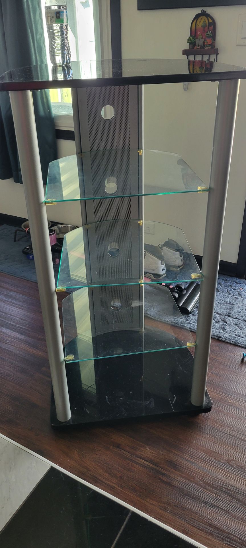 Im selling 2 glass corner shelves in good conditions $45 for both.