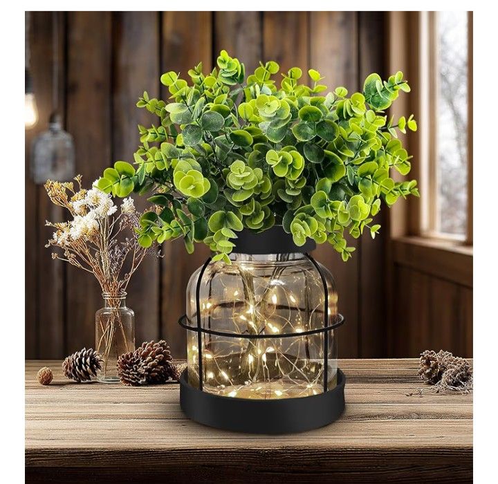 Lamp With Faux Eucalyptus Plant