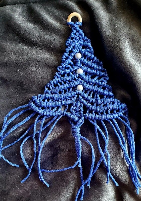 Macrame Tree 7x10 Blue Shimmer And Silver Beads