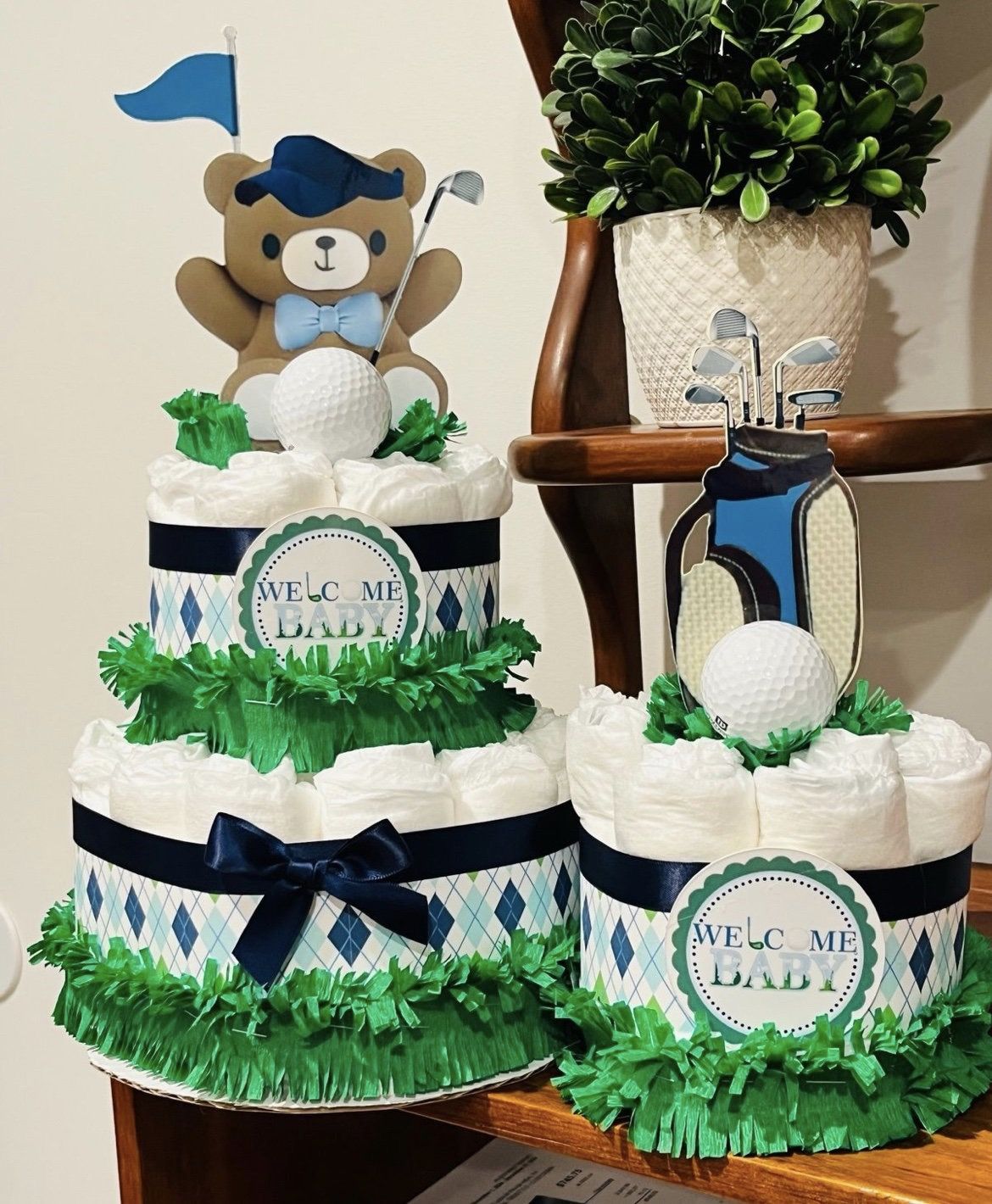 GOLF TEDDY BEAR green blue baby shower diaper cakes