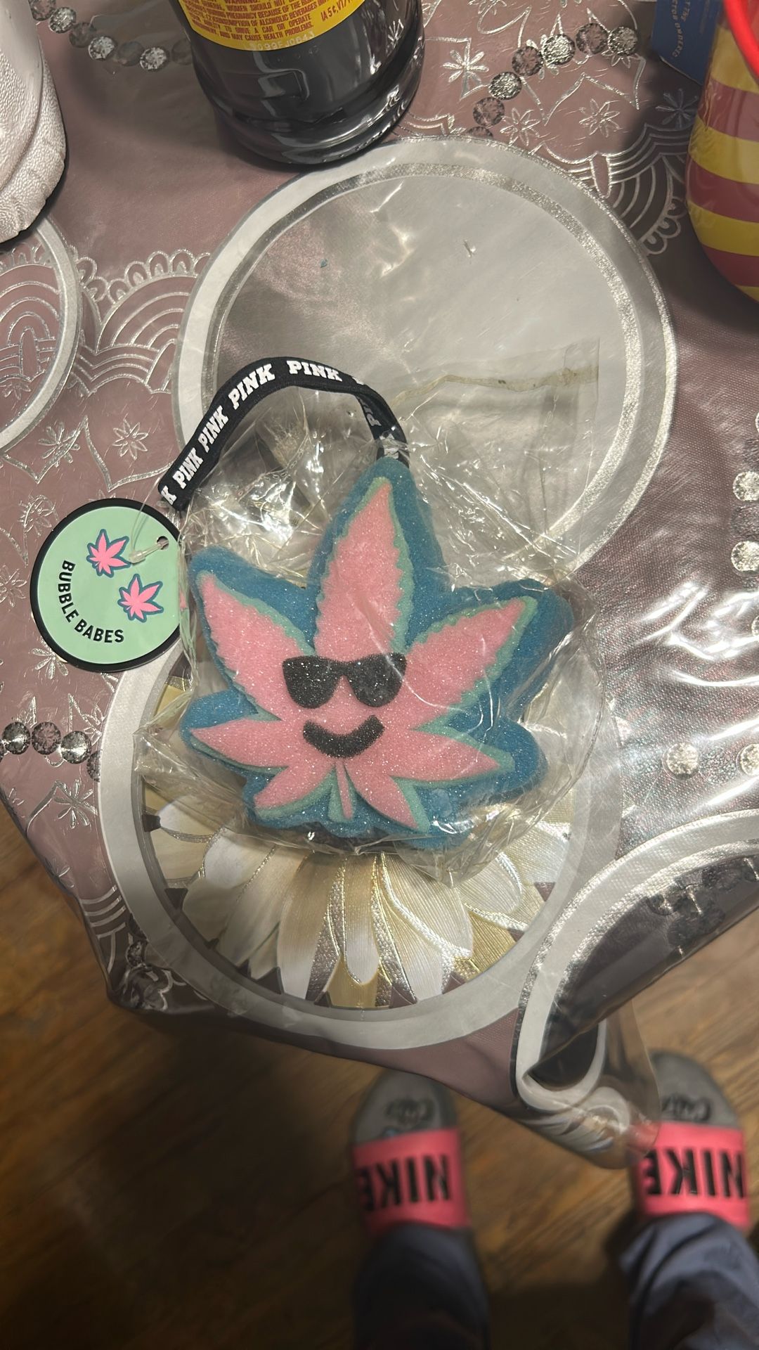 Selling a brand new fun colorful sponge with a cute smiling leaf design wearing sunglasses