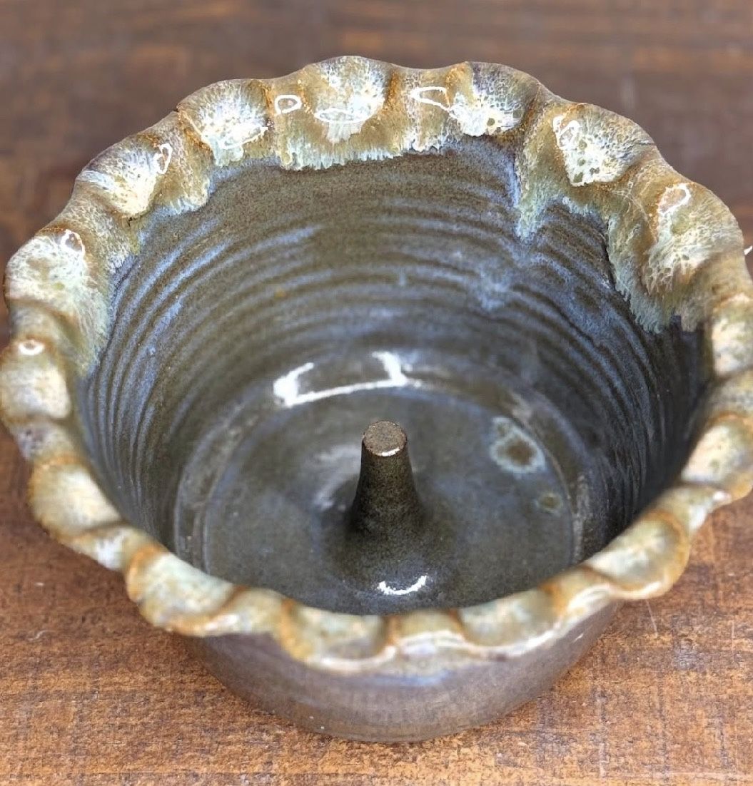 Hand-Thrown Ceramic Apple Baker with a Central Spike and Fluted Rim