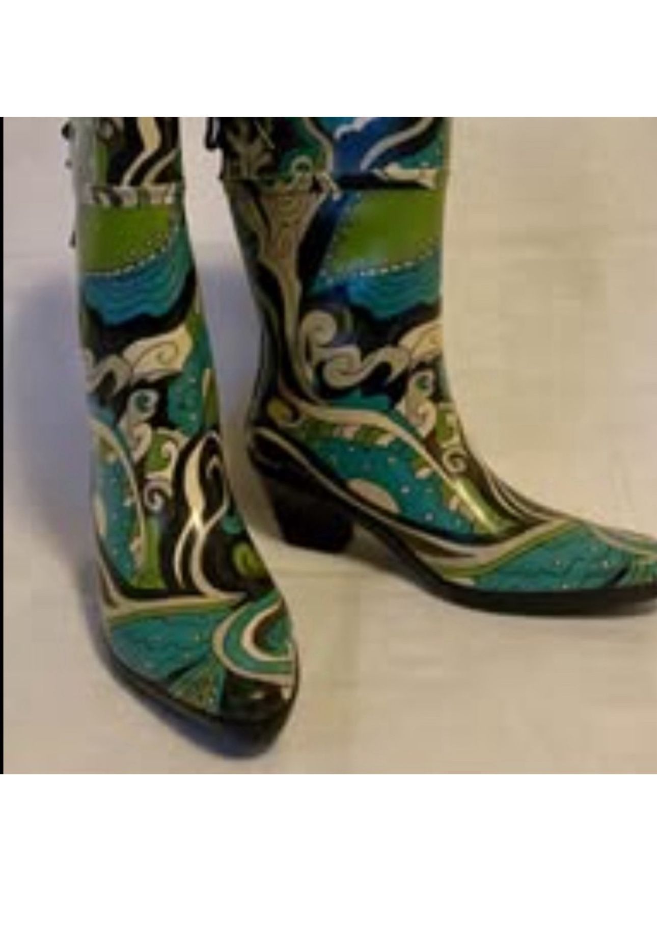 Step out in style with these vibrant women's boots. Featuring a stunning mix of green, blue, and black, these boots are perfect for making a statement. Enjoy comfort and fashion in one unique design. Smoke free home