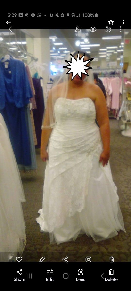 Brand new only worn in picture. Never altered. Stored in storage bag purchased with dress. My loss your gain .