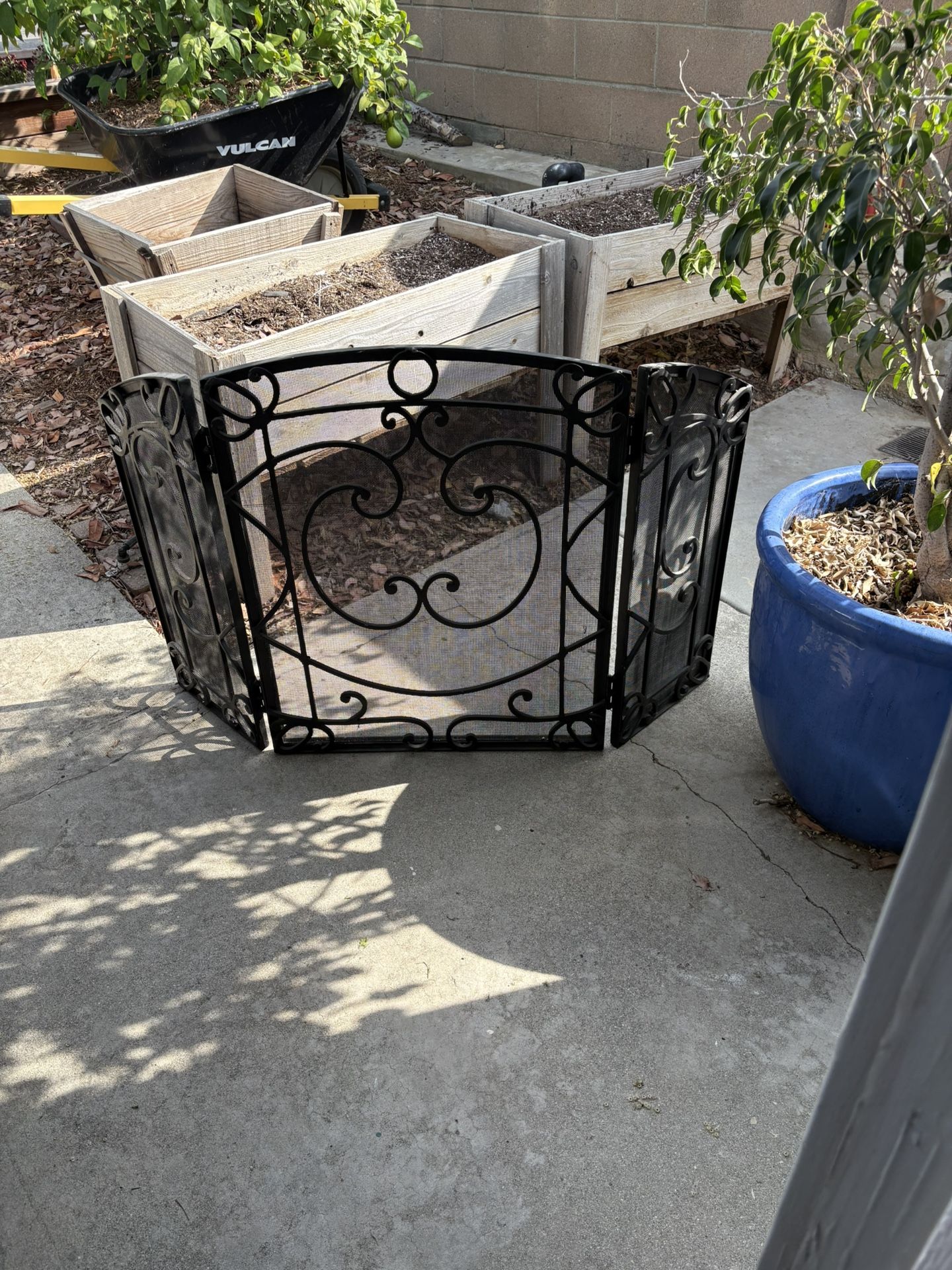Heavy beautiful fireplace screen. Original purchased from pottery barn for about $300. We changed the look of our fireplace and needed something less detailed.