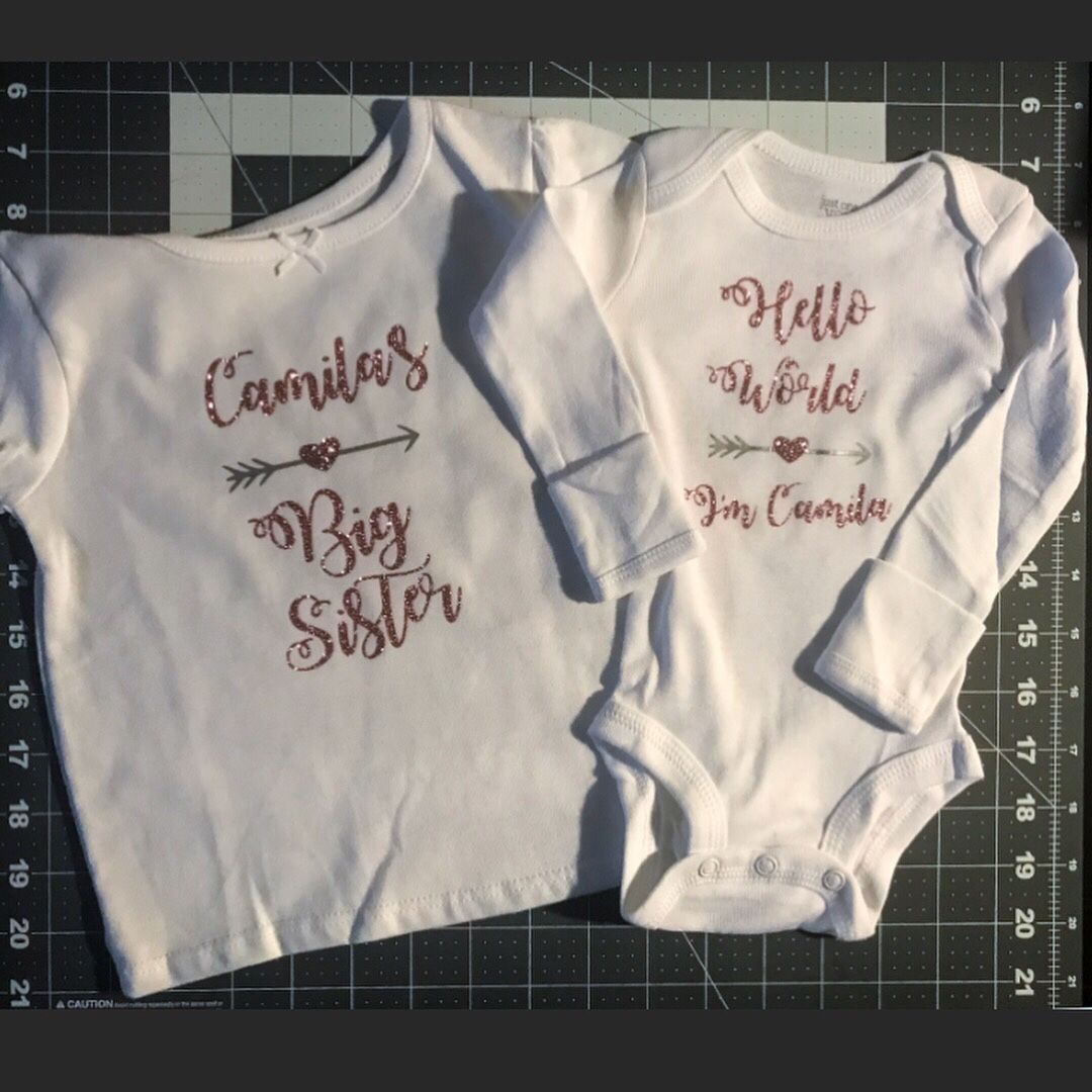 Baby onesie for new born welcome world. Big sister or big brother available too