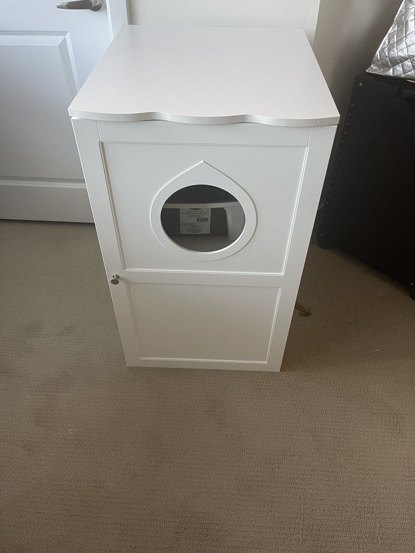 Two-story cabinet lets you hide your litter box from view or makes a great indoor cat house with cushions inside. Elegant styling looks like nice furniture. Opening on second floor provides top entry to litter box on bottom level. Second story entry platform catches litter before cats exit. Add a litter mat for even more containment. Features ventilation holes and magnetic closure on the front cabinet door.