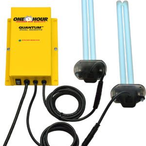 Main features Two powerful germicidal twin-tube H lamps output up to six times of a single tube lamp Installs easily without costly duct-work modifications Inexpensive to operate Effective lamp life of two years For HVAC systems for up to 5 tons. Lifetime warranty on power suppl Specs & Details The Quantum™ Dual Remote is a whole house air sterilization system that installs directly into your central heating and cooling system duct-work or plenum. UV lamp disinfects the air by reducing or eliminating airborne pathogens such as bacteria, viruses and organic material. The combined use of filtration and this germicidal UVC light is an effective means of preventing the distribution of airborne viruses and pathogens in your home, making it safer for you and your family. UV lamps kill and control harmful microorganisms Reduces or eliminates allergens that can irritate allergies and asthma Prolongs the life and improves the efficiency of your heating and cooling system