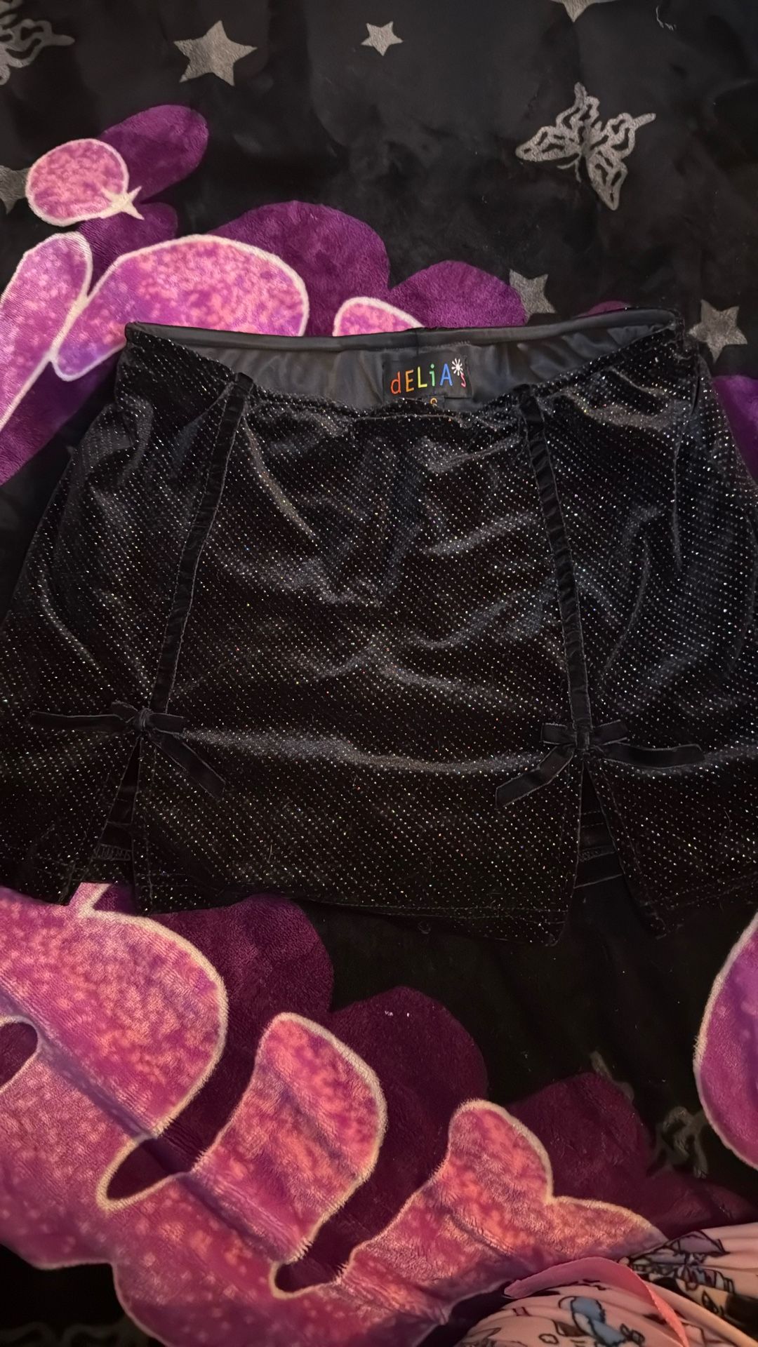 Velour mini skirt from Dollskill Delias line. Size small. Mini glittery colorful polka dots with built in mini velour shorts and 2 slits in the front