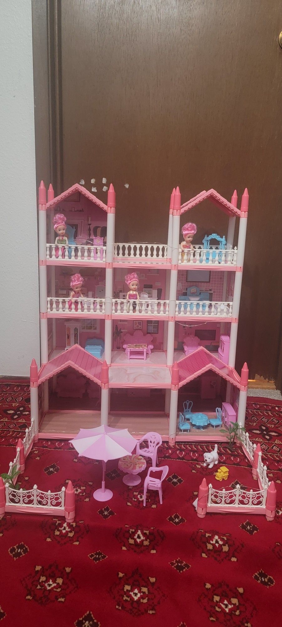 I bought this brand new, but my daughter doesn't play with it, and I bought it for $55. It comes with 35 accessories, 4 stories, and 4 dolls. Perfect for girls who love imaginative play, this assembly toy is a delightful addition to any playroom. Whether it’s for Halloween, Thanksgiving, Christmas, Eid, or any special occasion, this Princess Dream Castle Villa will make the perfect gift. The dollhouse features beautiful accessories with colors chosen randomly to add an element of surprise and fun.